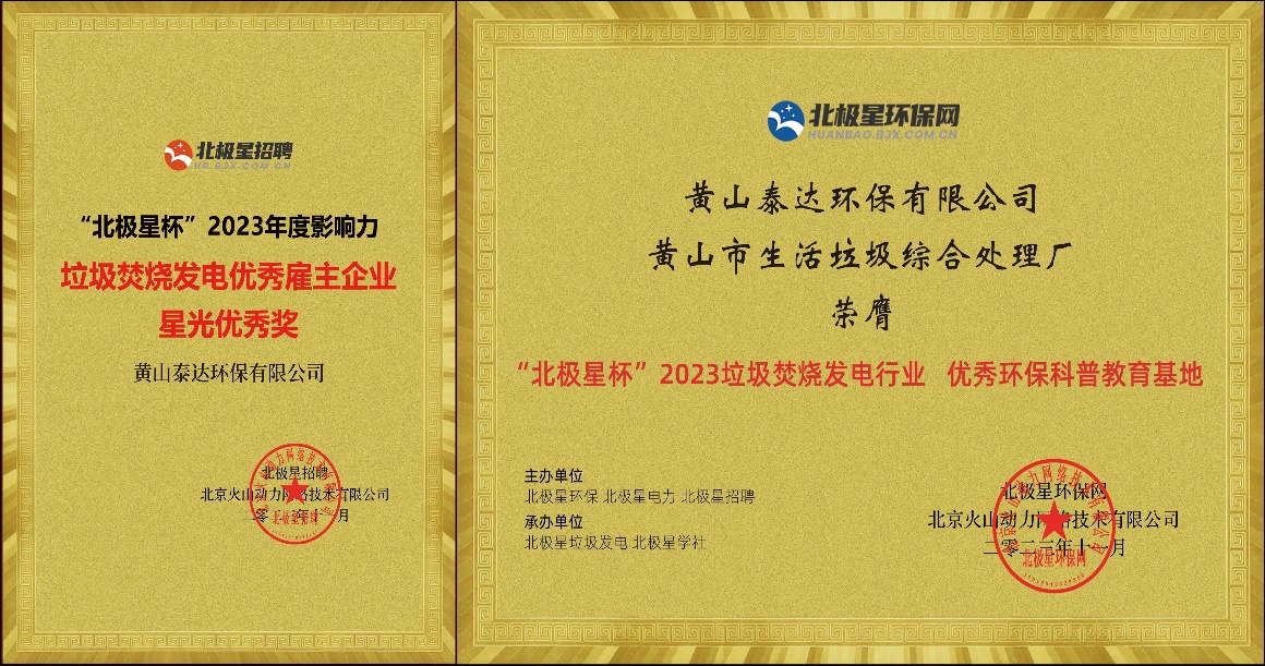黃山泰達(dá)環(huán)保有限公司憑借出色的運(yùn)營(yíng)管理、創(chuàng)新發(fā)展、環(huán)保科普等方面的工作能力,通過(guò)多維度信息填報(bào)、組委會(huì)審議、公示宣傳、網(wǎng)絡(luò)投票及綜合評(píng)定,最終從多家評(píng)選單位中脫穎而出,榮獲“2023年度影響力垃圾焚燒發(fā)電優(yōu)秀雇主企業(yè)星光優(yōu)秀獎(jiǎng)”和“2023年垃圾焚燒行業(yè)優(yōu)秀環(huán)??破战逃亍钡臉s譽(yù)稱(chēng)號(hào)。
